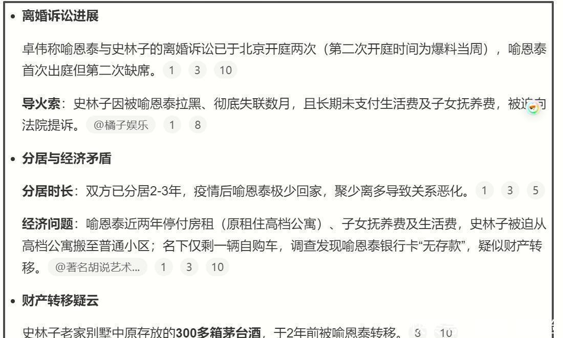 这场离婚风波的核心,是一场持续已久的法律拉锯战。根据卓伟的透露,就在上周五,喻恩泰与史林子的离婚官司迎来了第二次开庭。与首次开庭不同,这一次喻恩泰本人并未现身,选择了缺席。史林子提起诉讼的原因,在于两人已分居长达两三年之久。